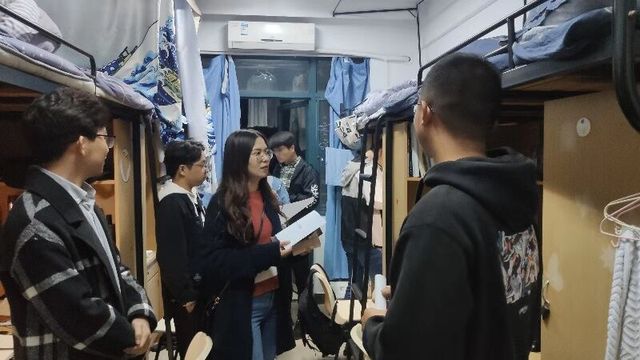 团委书记兼17、18级辅导员刘世通带队,兼职辅导员吕鑫、王蓉、排日代姆分别带领学生干部前往本科及研究生宿舍进行检查。