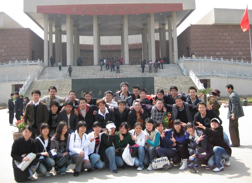 值清明节之际,为了以自己的实际行动实践和发展科学发展观,深入弘扬和培育同学们的民族精神和爱国情怀,提高爱国意识和民族自豪感,促进个人发展,提高同学们的思想素质。在安全学院学生党支部的组织下,安全学院35名学生党员以“浓浓爱国情” 为主题,以实地参观革命纪念地方式,远赴台儿庄缅怀革命烈士,06级辅导员陈少松老师一同出行。