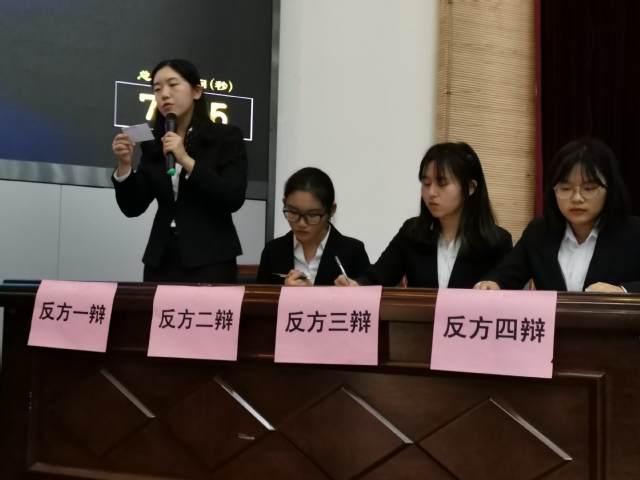 辩论开始前,双方辩手进行了简要的自我介绍,随后,主持本次辩论赛的主席介绍了本场比赛的评委。之后双方进入辩论的第一环节——开篇立论,机电学院和安全学院一辩分别陈述己方观点,正式立论。立论过程中,双方分别从己方的观点出发,论证了己方观点的正确性,同时也对对方的观点给予否定,现场的气氛逐渐热烈起来。第二环节攻辩过程中,双方辩手轮番向对方辩手质疑对方观点,辩手们犀利而又不失风度的言辞使辩论的气氛更加激烈。之后进入到了最为激动人心自由辩论环节,双方辩手你来我往,轮番攻守,在对对方观点给予否定的同时又摆出丰富而又深刻的事例来论述己方观点的正确性。其中,安全学院的辩手把握时机,努力寻找对方辩论中的漏洞,同时,又通过严密清晰的逻辑推理来论证己方观点,力求辩论不留破绽。随后,双方进行总结陈词,安全学院四辩对己方的论点进行总结,逻辑清晰,有理有据。在观众提问环节后,评委对两支辩论队进行了详细点评。最后,本次辩论赛的主席宣布了本次辩论赛的结果,安全学院以1:4的票数惜败于机电学院。