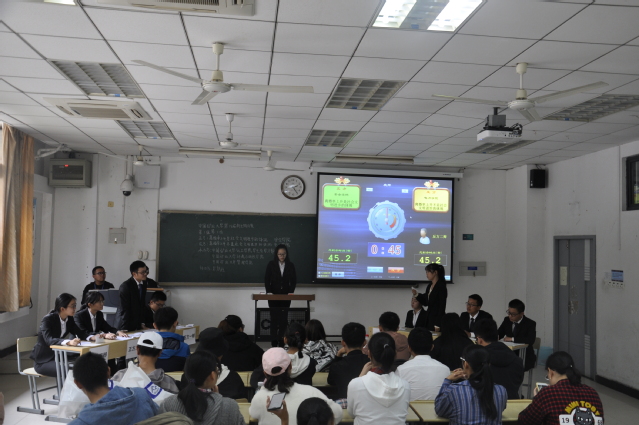 下午两点整,两个学院的辩手进入赛场,并结合辩题进行自我介绍后,比赛正式开始。此次辩论赛双方的辩题是“离婚率上升是不是社会文明的体现”,安全学院为正方,电力学院为反方。比赛流程严格遵从辩论赛规则。首先,正反双方一辩进行了立论陈词,点明了各自拥护的立场。在第二阶段盘问环节的自由辩论中,双方辩友利用敏捷的思维不断找出对方的漏洞,并展开激烈的反驳,将赛场的氛围推至了高潮。随后,双方四辩对本场辩论的整体态势进行总结陈词。在等待比赛结果的同时,现场观众对正反双方选手进行了提问,增强了比赛的观赏性。在场评委短暂地商讨后,就正反双方比赛时的表现进行了点评,并给出了相应建议。最终,正方安全学院赢得了本场辩论赛的胜利。