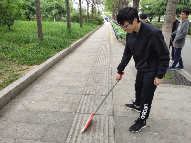 为了美化市容环境,更好地服务盲人,为他们创造良好的出行环境,4月27日,安全学院青年志愿者协会对矿大东门附近的盲道进行了义务清扫活动。