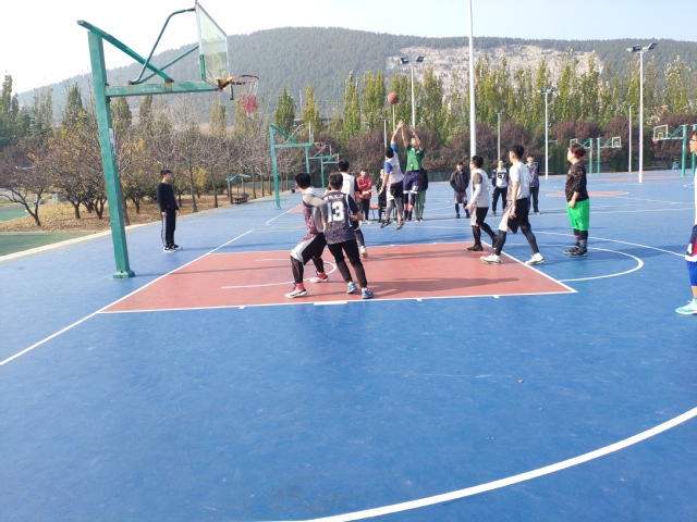 赛前,参赛队员们积极展开热身运动,互相加油打气。随着裁判员的一声哨响,比赛现场的气氛急剧升温,参赛队员们很快进入角逐的状态。随着比赛的深入,参赛队员也越来越有激情,队员们都用心跑位,为队友作掩护,还时不时有精妙的传球,漂亮的配合和精彩的上篮,为队伍贡献了一分又一分。比赛中也有意外跌倒的发生,但是队员们并没有因此而影响了比赛情绪,他们迅速调整状态,发出了更猛烈的攻势,加强防守。一场场紧张激烈、扣人心弦的角逐,不断的在篮球场内上演。赛场周围的同学们也呼声不断,他们用激昂的喊声来为场上的篮球队员们加油。当全场结束的哨声响起,大四联队与安全17-2班分别以35:26以及28:25的成绩晋级决赛。