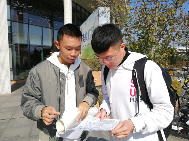 中午12时,参加“爱在红叶、旧衣深情”活动的宣传人员准时在三食堂广场集合展开工作。首先,他们将印制好的海报发放给过往的同学们,简单地说明了活动的内容和意义。本次活动是徐州红叶小动物救助站徐桂芝女士向社会各界寻求帮助,需要棉被衣物来为小动物建一个温暖的家。据悉,徐州红叶小动物救助站是徐桂芝女士于 2012 年发起和主办的救助流浪动物的民间组织,徐桂芝女士自费救助流浪动物多年,并为流浪动物倾注全部的心血和财力。徐女士表示:“我们希望大家能够为红叶小动物救助站提供帮助,我们相信,通过我们的努力,会让小动物们过一个温暖的冬天。”虽然中午天气寒冷,但看到宣传人员在寒风中积极地宣传,赶时间的同学们虽然不能听到宣传内容,却也接过宣传单,边走边读或是耐心地听工作人员的宣传。