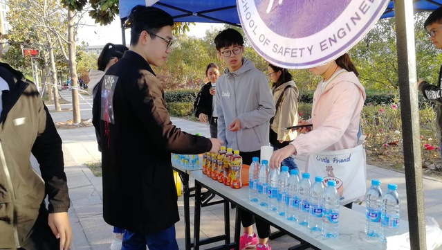 比赛开始前,安全学院的同学们就已将加油站所需食物、饮用水及应急药品等运达指定地点。早上8点,安全学院加油站内所有人员及物资准备完毕。比赛过程中,加油站工作人员们恪尽职守、细心服务,为参赛选手及时地准备好补给的饮用水及食物,并且不断地为参赛选手呐喊加油以鼓舞他们的斗志,为同学们提供了有力保障。