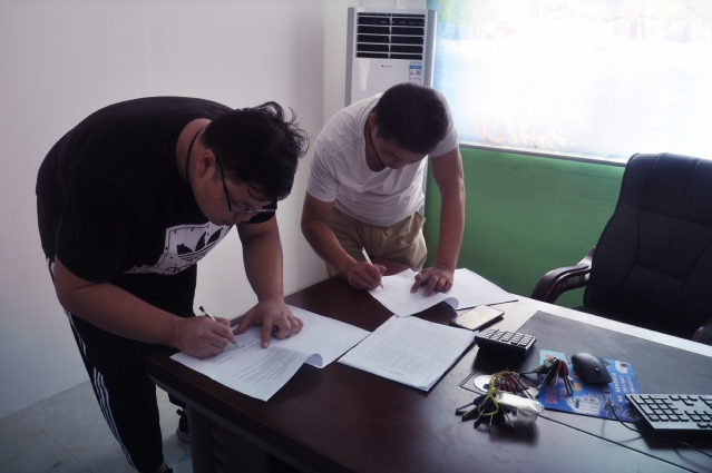 上午11时,安全工程学院刘世通老师到达陶楼小学,与陶楼小学刘凯校长见面。刘凯校长对刘世通老师的到来表示欢迎,并先带着刘老师参观学校的基础建设,随后又介绍了学校的发展规划和前景。刘老师也积极向校长询问支教团在支教期间的表现情况和工作质量。中午,刘世通老师随同学们一起在学校食堂就餐,体验支教团成员在支教期间的伙食情况。下午2时,暑期社会实践基地共建协议签署仪式正式开始。在双方仔细阅读过协议书上的内容后,刘凯校长和刘世通老师分别代表安徽省萧县圣泉乡陶楼小学和海角社区
