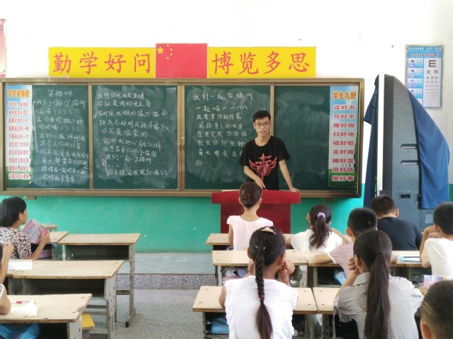 “仲夏希望”支教团给陶楼小学各年级学生开展礼仪规范和安全防范教育课。