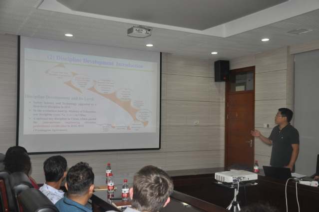 、师资力量与专业前景等为留学生们进行了详细的介绍。同时,王亮教授为留学生们更详细的讲诉了安全学科和安全专业情况,并针对目前学科建设存在的问题,提出针对性的建议。随后,部分安全学院16级学生与亚伍伦贡大学师生进行了面对面的交流,深入了解了外国大学生的基本生活习惯。报告会后,王亮教授带领留学生们参观了安全学院各个实验室。留学生们对实验室的仪器设备和实验内容十分感兴趣,问题不断,现场老师都做了一一解答。