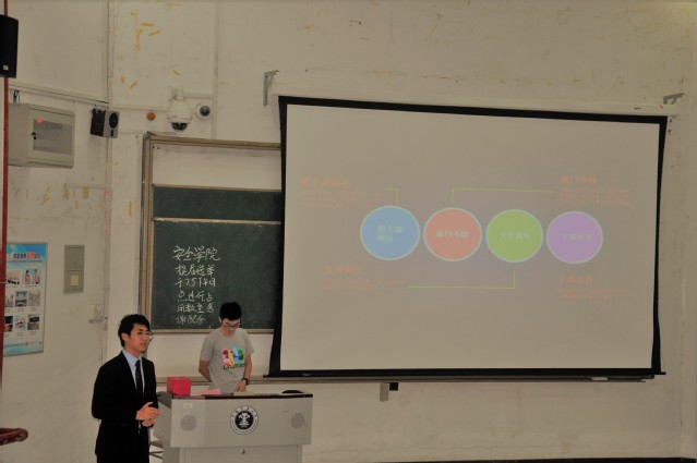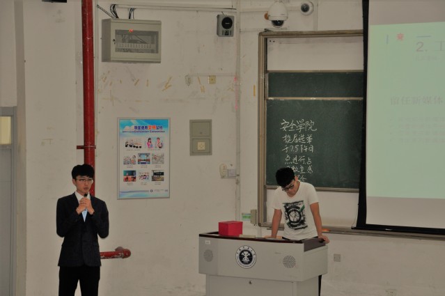 下午4点,庄严的国歌奏响,会议正式开始。安全学院第十一届团委副书记兼学生会主席孙一伟对上一届团委学生会工作和成绩做简要的回顾与总结,并对下一届工作进行展望。报告中强调安全学院团委学生会坚持以学校为中心、以学生为本的工作理念,以社会实践为重点、以科技创新为特色的思想路线。