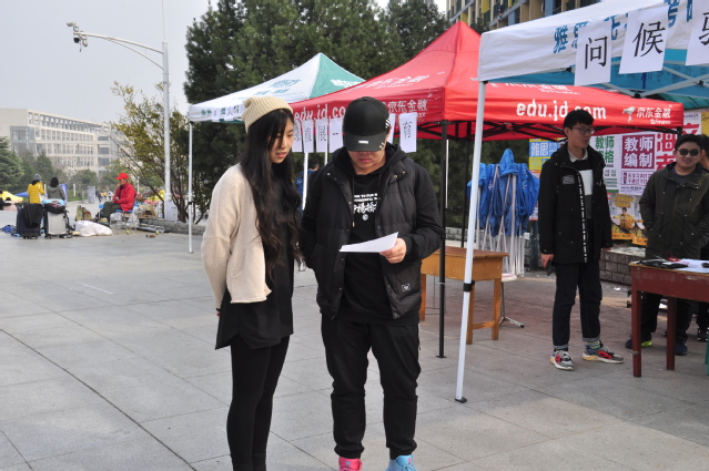 中午12点30分,服务分队的同学们就展开了准备工作,开始布置场地,并向来往的同学分发传单,让更多同学们了解活动内容。中午1点活动正式开始,本次活动为参与活动的同学向他人传递问候,同时也会收获陌生人给予的暖心问候。随着对活动的了解的增加,更多同学参与进来,现场气氛十分热烈。一位参与过活动的同学说:“我从没想过一个小小的问候竟然有如此温暖人心的作用,在这寒冷的冬日,一声问候,就是最温暖的行为。”
