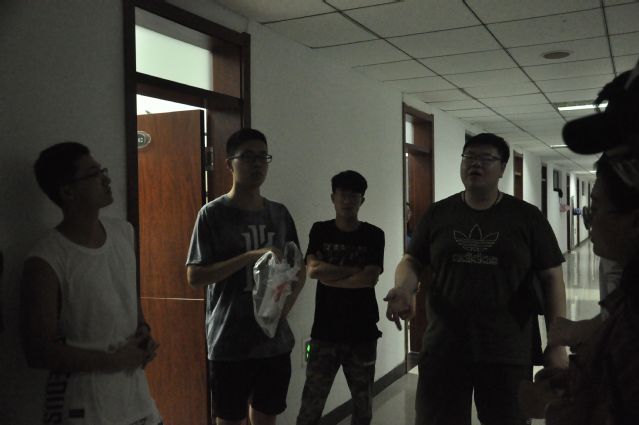 9月2日晚上10点,辅导员刘世通和主席团成员到达新生宿舍检查内务的完成情况。