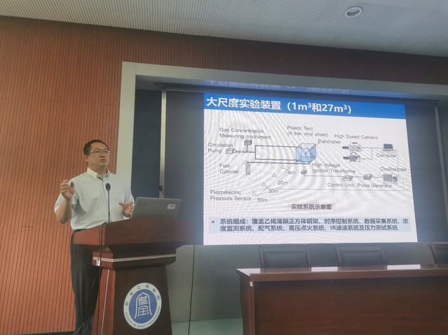 高伟教授首先介绍了我国氢能行业现状,然后从基础研究和现场应用两个方面详细阐述了氢安全领域的研究成果。在理论层面,分析了氢气火焰自加速、自相似特征,揭示了湍流扰动和火焰不稳定性的耦合关系。在应用层面,研发了氢气爆炸泄放技术及装备,开发了抑爆隔爆材料及方法,取得了显著的经济和社会效益。高伟教授的报告精彩纷呈、深入浅出,现场不时响起阵阵掌声。