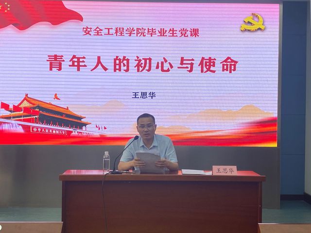 6月10日下午,院党委书记王思华以“青年人的初心与使命”为题,为全体2021届毕业生党员及新发展党员作党史学习教育辅导报告并讲授毕业生党员专题党课。院党委副书记孙留涛,毕业生党员和新发展党员100余人参加了学习教育。报告会在矿业科学中心A200举行。