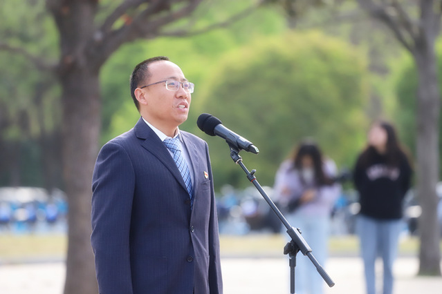在镜湖广场举行“不忘百年跟党初心,青春奋斗勇担重任”2021年五四升旗仪式暨共青团表彰活动。校党委书记刘波、校长宋学锋及全体在校校领导出席活动。学院党委书记王思华,党委副书记孙留涛,学工办主任、团委书记刘世通及部分学生代表参加活动。徐州市五四青年奖章获得者刘应科老师以“把论文写在祖国的大地上”为题在表彰大会上发言。