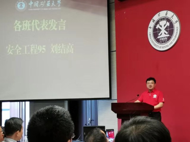 党委书记章毛平、环测学院执行院长张绍良先后致辞,原采矿工程系95级辅导员徐黎华发表感言。测量95级杨敏代表筹备组介绍大会筹备情况。采矿95-1班朱若军、采矿95-2班王治清、安全95班刘结高、运输95班姚强、测量95班陈晓龙作为班级同学代表发言。会上还举行了捐赠仪式。