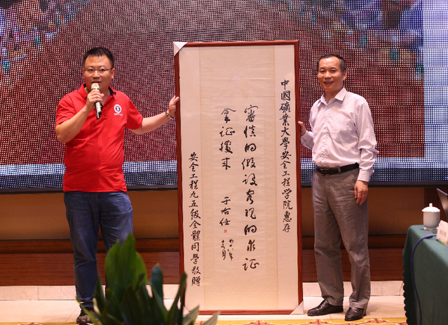 会上,王飞、胡廷海等同学代表安全95级校友向学院捐赠了名家书画作品。会后,与会师生一起合影留念。