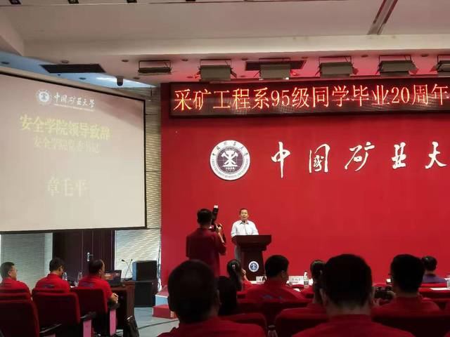 党委书记章毛平,矿业学院党委书记陈新忠、院长张吉雄,环测学院党委书记李长贵、执行院长张绍良,徐海学院党委书记、原采矿工程系党总支副书记曹巍,研究生院副院长、原采矿工程系95级辅导员徐黎华等出席大会。150余名原采矿工程系95级校友及其亲属,有关学院、部门负责人参加了大会。大会由原采矿工程系测量95级张明来主持。