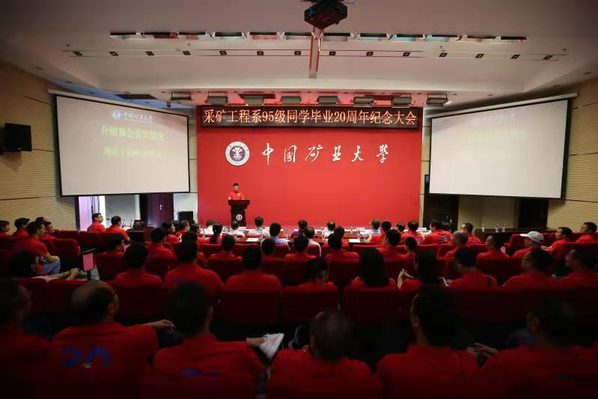原采矿工程系95级同学毕业20年纪念大会在南湖校区图书馆报告厅举行。原校党委副书记、纪委书记才庆祥,对外合作与发展处处长朱长风,海角社区