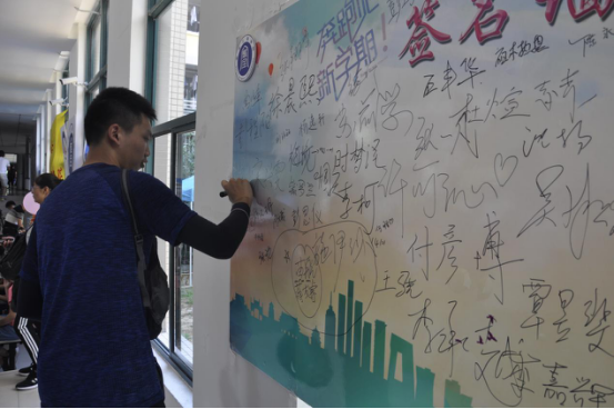 安全学院的迎新工作队伍主体由团委学生会成员组成,采用轮流替班制服务。所有迎新工作人员都统一佩戴工作证,在迎新会场热烈迎接新生与家长,并采用数字化登记方式办理相关手续,使得报到流程更便捷、迎新服务更贴心、入学氛围更温馨。此外,安全学院还别出心裁地在梅苑迎新会场设置了新生签名墙和拍照框,新生可在墙上签名并与家长一起在拍照框合影留念。