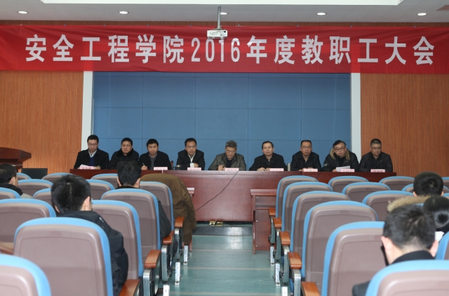 2016年度教职工大会”在矿业科学中心A200举行。校教代会执委会副主任、校工会主席李来成,学院党政领导及全体教职工出席大会。大会由院党委书记章毛平主持。