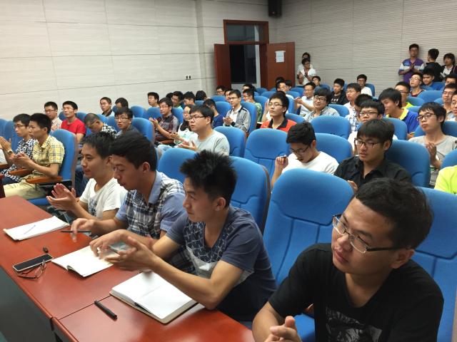 报告的主体内容分为四个部分,分别为:学术论文的概念和分类、如何撰写学术论文、如何投稿发表、论文的格式要求。戚老师着重讲述了如何撰写学术论文和如何投稿发表。他指出,在撰写学术论文时,首先要结合自己从事的工作,业务能力,选择有创新性和现实意义的主题,然后搜集相关文献,阅读最新的资料,为撰写论文开阔思路。做好初步准备后就要列出论文提纲,树立论文骨架,明确层次重点。接着就可以根据提纲,指出要解决的问题,填充论文的内容,丰富论文的“血肉”。最后就是对论文的不断修改,深化,提高。戚老师还向大家介绍了自己归纳总结的写作过程中需要注意的11个问题。这让在座的同学们深感学术的严谨,也都觉得收获良多。当讲到如何发表论文时,戚老师以自己的切身经历举例,展示了与杂志编辑,审稿人的信件往来,为同学们生动形象的展示了论文投稿和发表的过程。老师朴实生动不失幽默的报告引得同学们全神贯注的倾听,也得到了同学们阵阵掌声,很多同学都边听边记,十分认真。