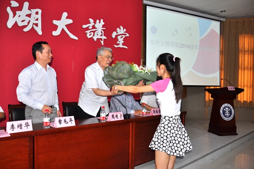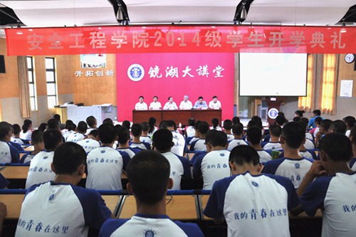2014级新生开学典礼在镜湖大讲堂举行,来自全国各地的安全学院新生欢聚一堂。中国工程院院士周世宁,院党委书记章毛平,院长周福宝,副院长李增华,党委副书记钱雄,副院长朱晓东以及新生班主任、各年级辅导员,2014级167名本科新生,123名硕士、博士研究生参加了开学典礼。开学典礼由院党委副书记钱雄主持。