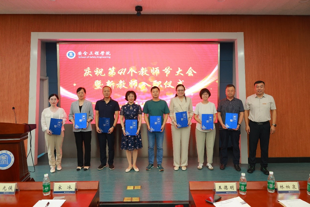 在第41个教师节来临之际,9月9日下午,学院在矿业科学中心A200会议室召开庆祝第41个教师节大会暨新教师入职仪式。院党委书记宋冰,师德楷模教师王德明、林柏泉、程远平、王恩元,副院长郭梅香、戚绪尧,徐州市第一人民医院副院长陈光侠、科教处处长席纪江,学院新入职教师,徐州市第一人民医院授课教师代表,学院各研究所负责人、教师代表以及各科室负责人参加了此次会议。会议由郭梅香副院长主持。