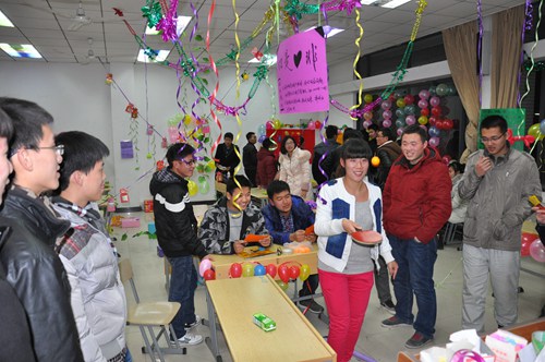 安全学院组织的“元旦游艺宫”在31日也于教4C102、104教室火爆开展。充满着颜色缤纷的彩带,各式各样的气球的教室,俨然被装扮成了游戏的乐园。“口是心非”、“镖镖比达”、“合作过障碍”等游戏将活动现场的氛围瞬间点爆,过往师生纷纷被吸引了过来。做游戏、赢奖品,安全游艺宫里欢乐一片。此外,为迎接元旦到来,各个学院都设计了各式各样的花灯,悬挂在校园公路的旁边,供游人欣赏。在众多花灯之中,安全学院以“安”字为主题的特色花灯、创意十足吸引了过往师生驻足欣赏、拍照留念。最后在全校评比中,安全学院制作的花灯获得了二等奖,游艺宫也获得了优秀奖的好成绩。