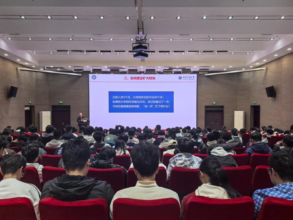 为引导2025级新生熟悉校情校史、强化专业认同,树立远大志向、实现自我成长,10月23日晚上,学院邀请关工委常务副主任章毛平教授于图书馆报告厅为全体新生带来《在矿大遇见更好的自己》校情校史专题讲座。讲座由学院党委副书记邵波主持,2025级全体本科生参加。
