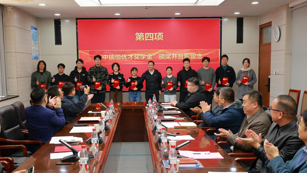 副院长刘晓斐为企业人员颁发创新创业特聘导师证书。李东先生和张青先生分别为获得“中瑞恒优才”和“特领优才”奖学金的同学颁发荣誉证书并合影留念。安全科学与工程2024级硕士黄丽文、安全工程2022-6班张宝玉分别代表“中瑞恒优才”和“特领优才”奖学金获奖学生进行发言。