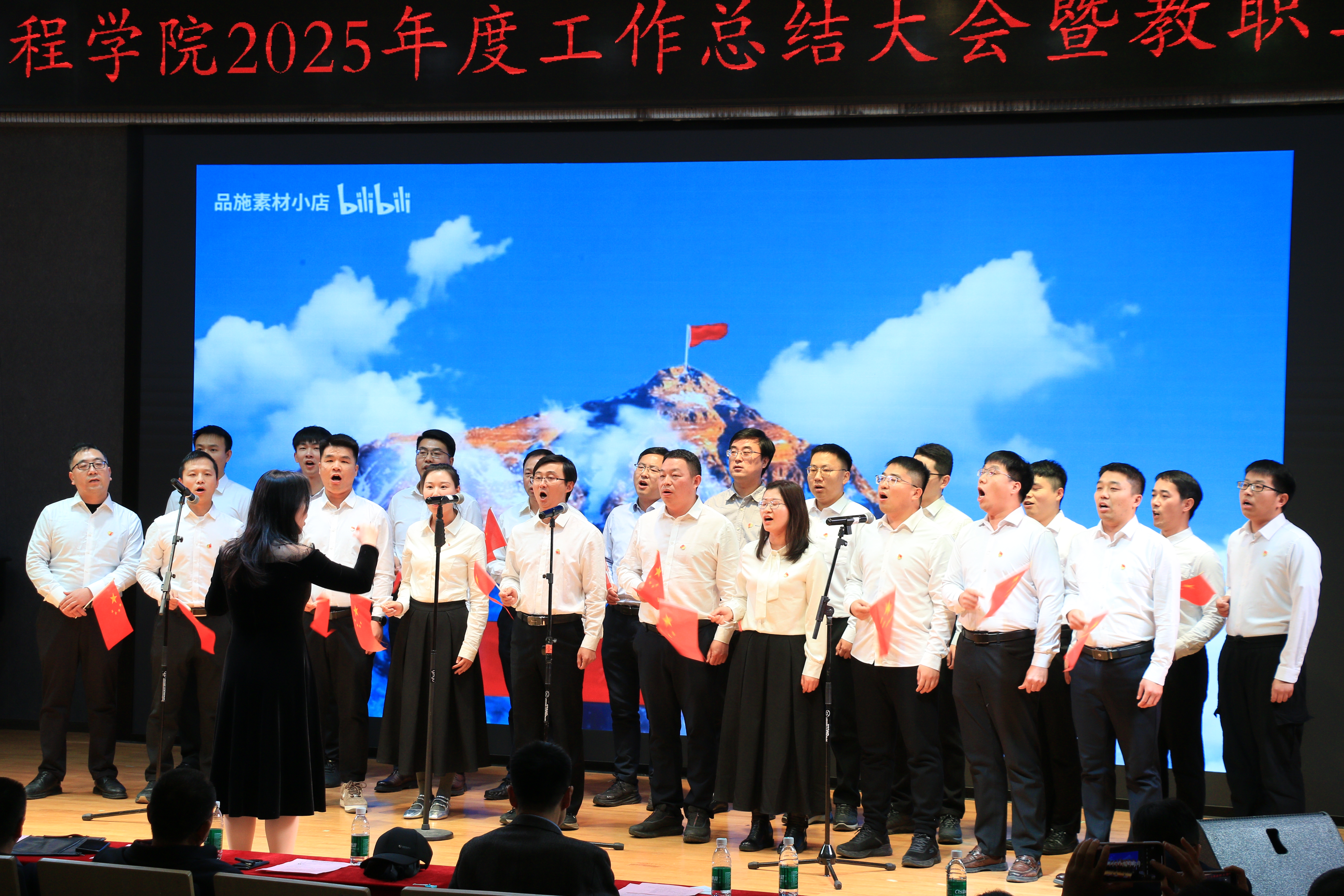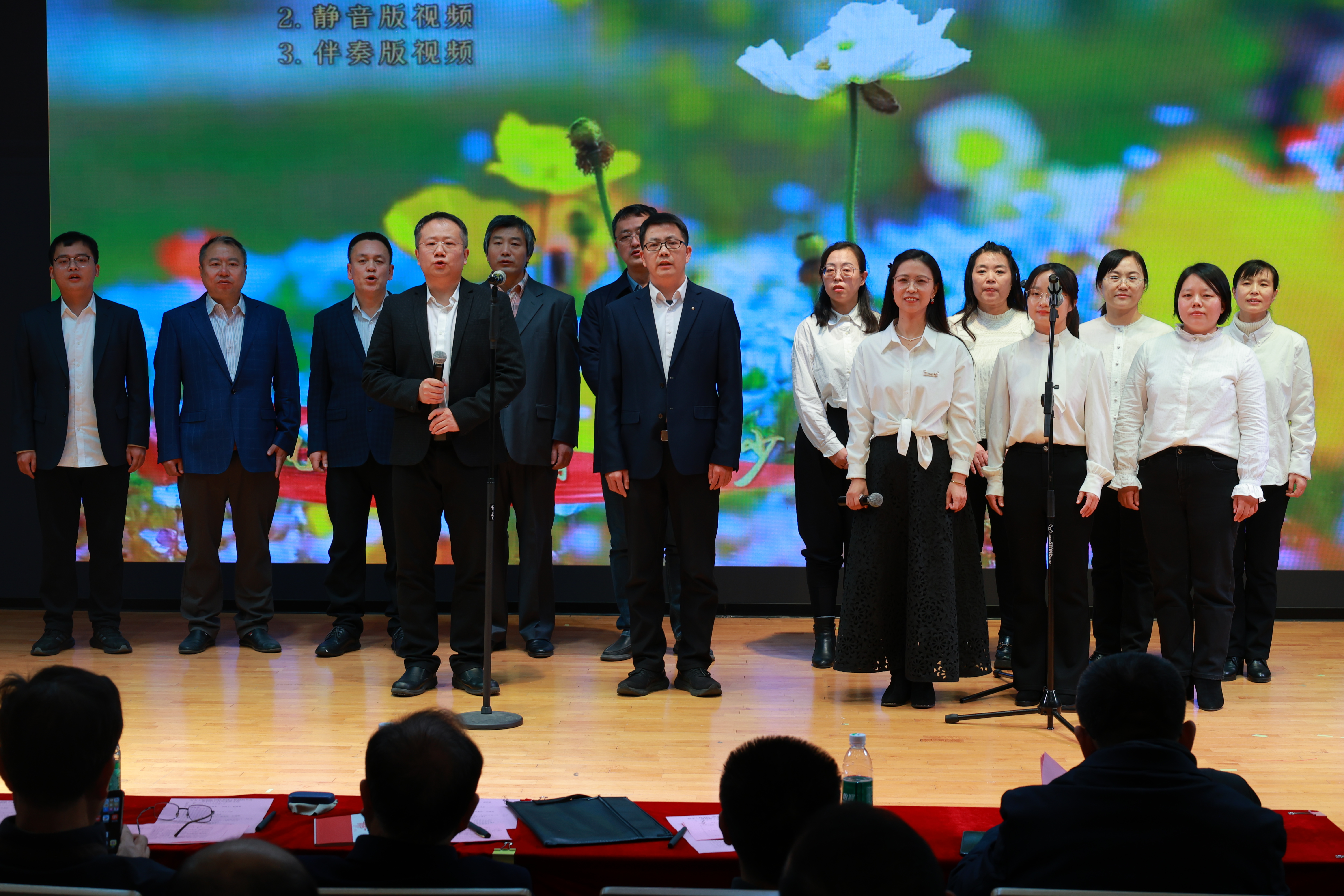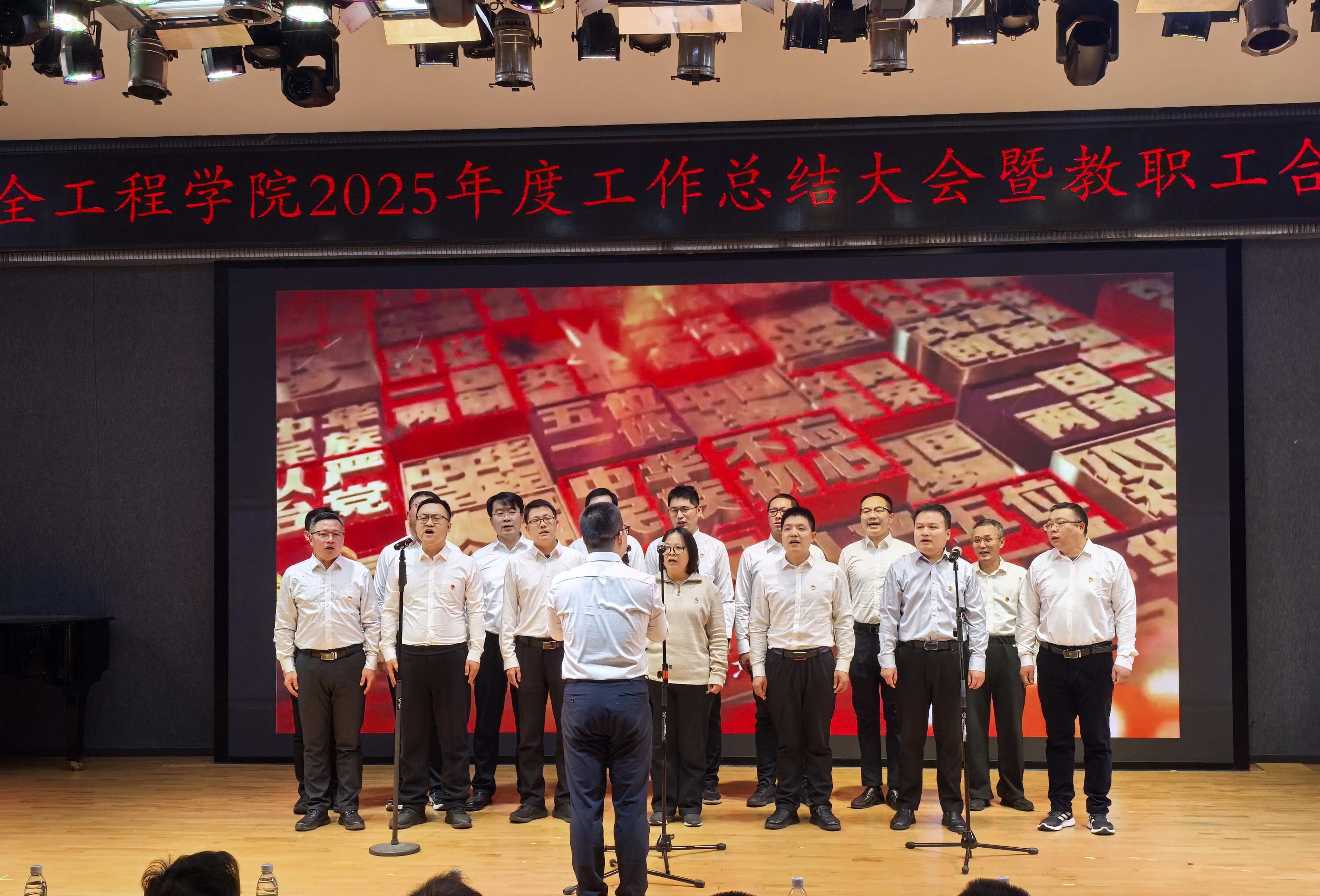 为总结学院年度工作,凝聚奋进力量,丰富教职工文化生活,12月28日下午,学院举办2025年度工作总结大会暨教职工合唱比赛。院党委书记宋冰、院长翟成、部分院友代表以及学院全体教职员工参加了活动。