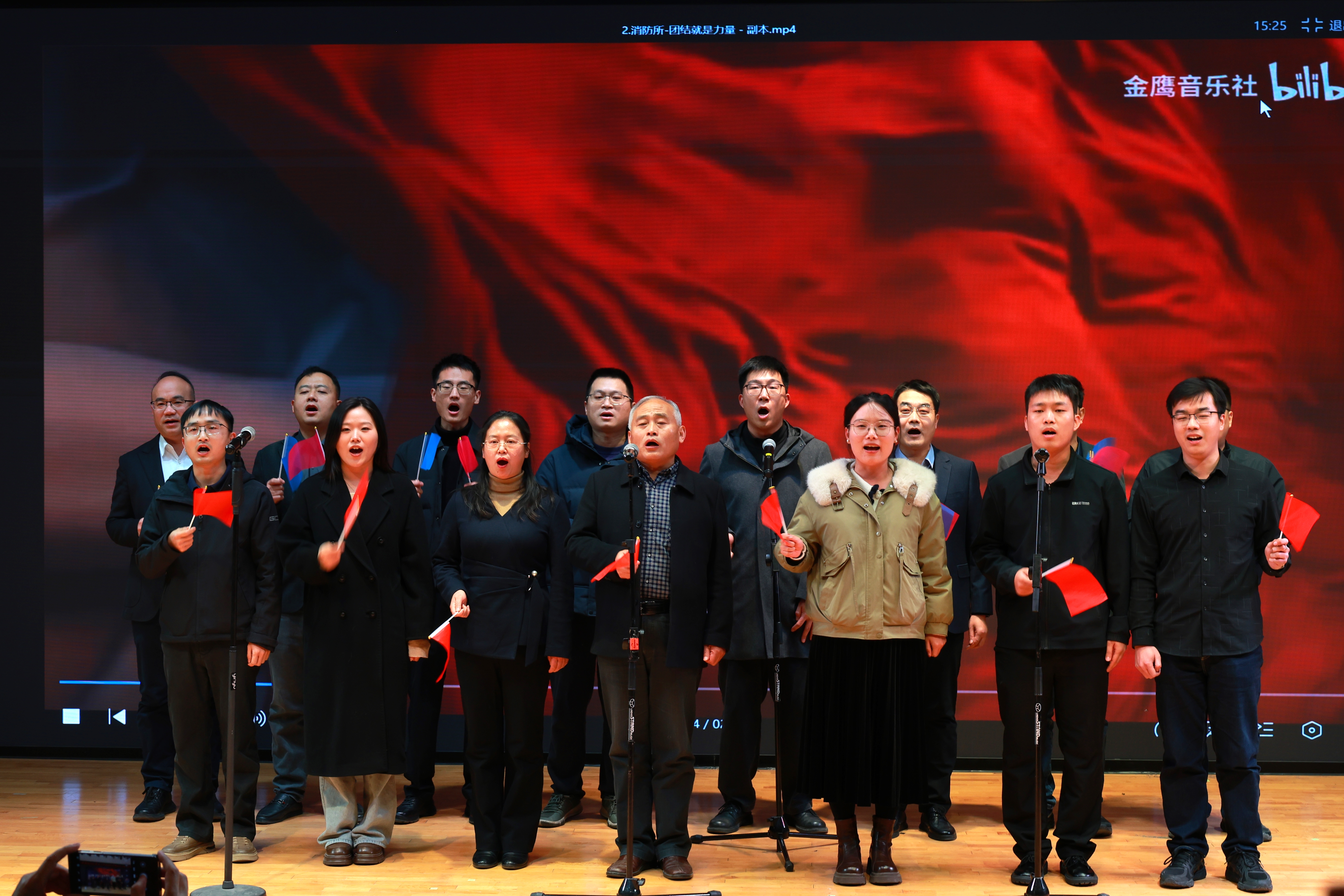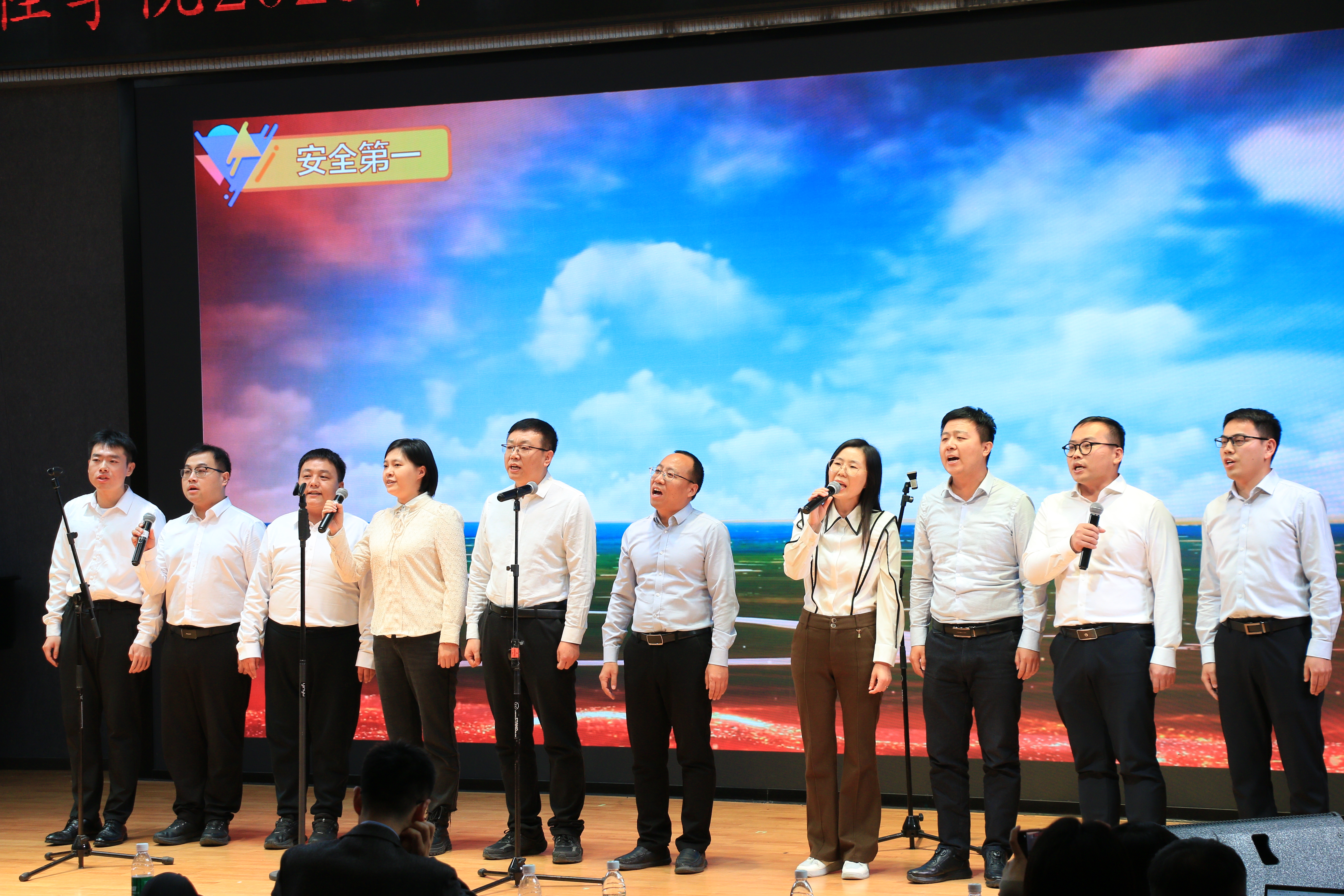 工作总结大会后,教职工合唱比赛在热烈的掌声中拉开帷幕。各研究所与机关单位依次登台献唱,用歌声表达爱国情怀、展现精神风貌。通风防灭火与地下空间安全研究所合唱队深情演绎《我的中国心》,唱出了对祖国的赤子之情;消防与公共安全研究所合唱队高歌《团结就是力量》,气势昂扬;学院党政机关合唱队带来的《敬业阵线联盟》,旋律活泼,展现了管理服务队伍的活力;全重与实验中心合唱队倾情献唱《明天会更好》,以悠扬旋律传递对学院创新发展和祖国繁荣昌盛的真挚祝福。职业健康与安全防护研究所合唱队带来《我爱你中国》,歌声深情饱满,抒发了深厚的家国情怀;工业安全与应急装备研究所合唱队演绎《明天会更好》,唱响对安全生产事业进步与国家未来发展的坚定信心;安全监测与应急管理研究所合唱队带来歌曲《明天会更好》,以铿锵节奏传递出扎根专业、奉献国家的坚定信念;瓦斯防控与双碳技术研究所合唱队深情演唱《歌唱祖国》,用激昂的旋律抒发科研报国、服务发展的坚定情怀。