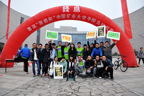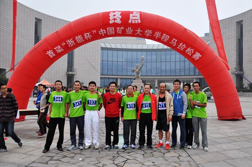 最先完成比赛的选手。王德明教授更是全校唯一参赛且跑完全程的博导,也是唯一55岁以上在2小时以内跑完半程马拉松的矿大教职工。尽管每个参赛选手都已经筋疲力尽,但他们的脸上却绽放出喜悦轻松的笑容。长距离的奔跑十分辛苦,但是安全人在比赛中体现出的锲而不舍的精神足以让所有人敬佩。