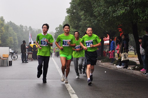 南湖校区鸣枪开赛。安全学院教授王德明,教师张仁贵、蒋静宇、刘应科、仲晓星、戚绪尧、13级辅导员杨洋以及部分本科12级和13级的同学参加了这场激烈的角逐。全程沿学校环路内侧车道逆时针绕行七圈,共21.0975公里的赛程是对所有运动员体力与毅力的一次巨大挑战。