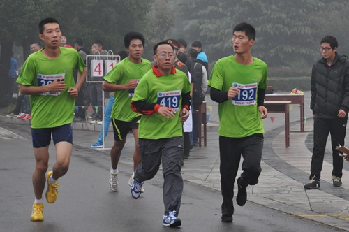 的马拉松运动员从教授到学生都展示出安全人高昂的竞技斗志,从比赛开始就全力以赴。徐州深秋的天气颇为寒冷,安全健儿的衣服还是很快被汗水浸透,但他们个个挑战着自己体力和毅力的极限,在全程环校近七圈的比赛中努力成为自己的强者。