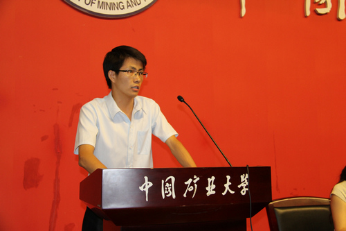 博士生王和堂作为获奖学生代表上台进行了发言,与全校师生分享了自己参与大学生课外学术科技作品竞赛以及备战“挑战杯”的心得。