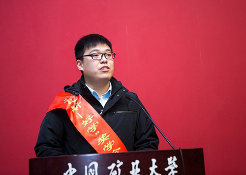 曹德欣副书记发表了讲话。他说,“瓦斯-好学”奖学金是学校唯一一项由院士出资设立的奖学金,体现了院士对培养人才的关注和对青年学子的关怀,我们由衷地表示感谢并致以崇高的敬意。全体同学都要以周世宁院士和袁亮院士为榜样,既要“志存高远”,又要“好学力行”。只有志存高远,努力学习,注重理论联系实际,富有创新精神,才能成长为栋梁之才。