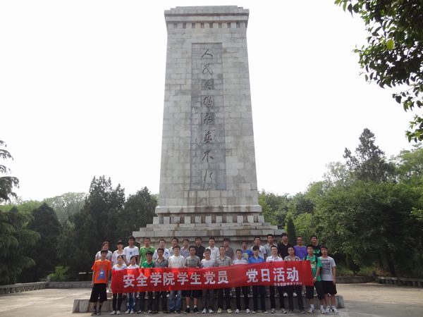 5月6日,为进一步深入推进创先争优活动开展,增强安全学院学生党组织的建设和凝聚力,引导学生党员明确使命、争创佳绩。在学生工作办公室主任孙留涛以及辅导员老师李成刚、刘永杰的带领下,安全学院党员工作站和10级党支部组织学生党员代表到萧宿铜灵边区革命烈士陵园开展了大型党日活动。
