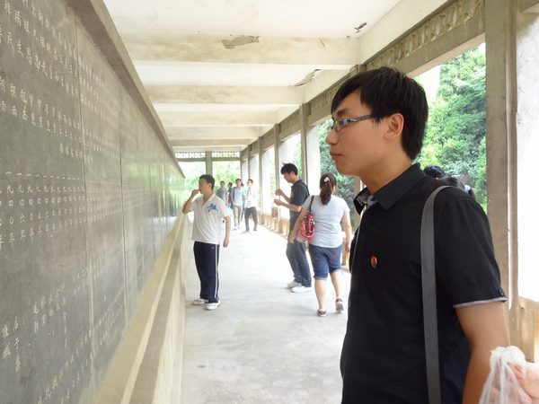 安全学院学生党员代表于早上七点半从学校出发,经过近一个小时的车程,顺利到达安徽萧县。同学们首先来到萧宿铜灵边区革命烈士陵园,整个陵园内松柏苍翠,革命英雄永垂不朽的丰碑更显得庄严肃穆。进入了陵园后党员们首先来到了丰碑面前进行宣誓,在10级党支部书记于群同学的带领下进行宣誓,宣誓氛围庄严肃穆。紧接着,党员们还参观了纪念碑,看到纪念碑上铭刻着的烈士名字,党员们都受到了强烈的心灵洗礼和思想触动。