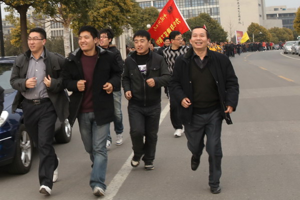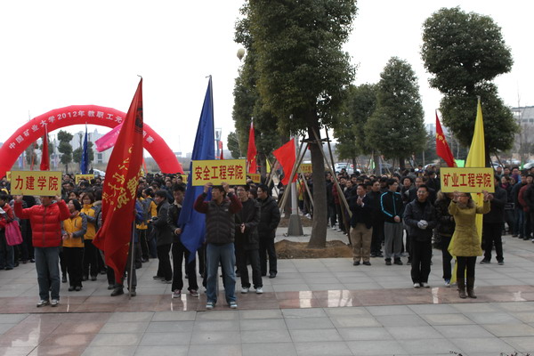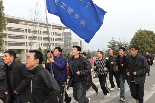 12月27日下午,为迎接元旦佳节到来,增强教职工的全民健身意识,安全学院党委书记章毛平、行政副院长李金明、院党委副书记钱雄的带领30余名教职工积极参加2012年元旦教职工长跑比赛。
