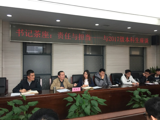 4月3日下午,首场“书记茶座”活动在矿业科学中心A412举行,安全学院学工办以“责任与担当——与2017级本科生对话”为题,邀请学院党委书记章毛平与20名2017级学生代表共话成长。
