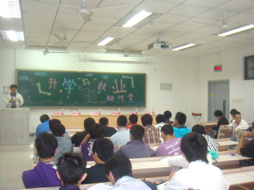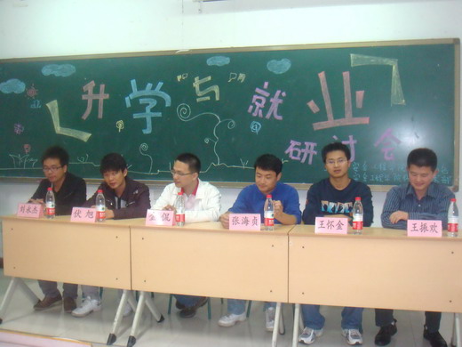 创业协会和科技学术部共同举办的“升学与就业”研讨会于教五A201成功举行。本次研讨会邀请到了07级的刘永杰、伏旭、金侃等优秀同学作为嘉宾。交流会由何选择同学主持,海角社区