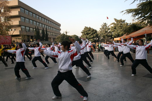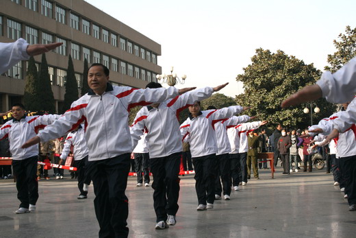 教职工们动作整齐划一,路线清晰明确,把广播体操的力与美完美地结合在一起,展现给所有的观众和评委,得到了现场的阵阵掌声。