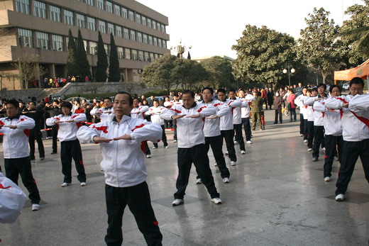 伴着第九套广播体操动感的旋律,以“开展体育锻炼,增强国民体质”为目的的教职工广播体操比赛拉开了序幕。本次比赛以三个学院一组的形式滚动进行,队形采用一路纵队的方式排列。海角社区