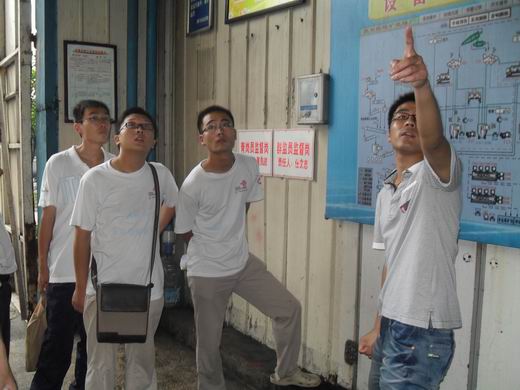 此次实习学生党员参观了调度中心、主副井、通风科、洗煤厂、综合利用厂以及风机厂。期间,实践团受到了矿上职工们的热情招待,并且邀请到了的具有丰富经验的老师们带领实践团成员参观相关设施。教学组肖长华老师在展览室用风趣幽默的言语向大家讲解了张双楼煤矿的概况。张黎明老师为大家展示了煤矿水资源一体化综合利用的先进设施,让大家对矿区的可持续的科学发展有了更深的了解。主井负责人沈老师更是针对同学们专业基础薄弱的缺点,对症下药,结合生活实例将晦涩难懂的知识传授给在场各位,给同学们留下了深刻的印象。
