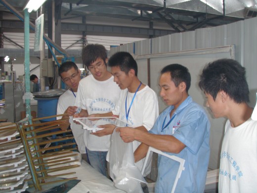 7月13日上午,在秀强公司人力资源部王刚主任的亲切接待后,团队一行人逐一参观了秀强公司的各生产车间。下午,团队5位成员便以小组形式分配到各个分厂,以“义务蓝领”的身份深入基层生产车间,在接受一线工人们的简单指导后,积极投身于生产工作。尽管队员们参与的是简单的生产环节,但在标准工时的工作中他们也深切的体会到生产中员工们的团结和务实。了解到企业的的效益离不开海角社区在公司员工中的渗透,更离不开蓝领阶层辛劳与汗水。其中一位有连续12小时夜班经历的同学深有体会的说:“正如秀强员工培训的宗旨一样,只有立足基层沉下去,才能体会到创业的艰辛,才能为未来的事业奠定基础。作为学生我们也应沉下去,才能在以后的职业生涯中坚实的走下去。”