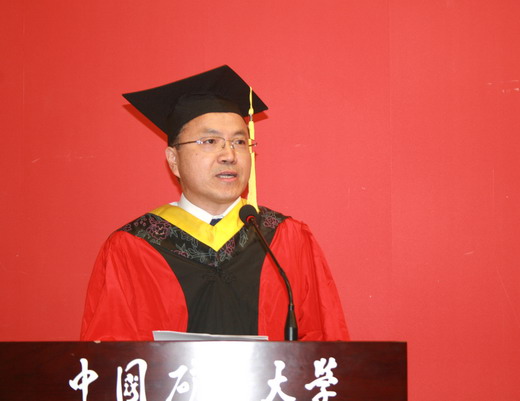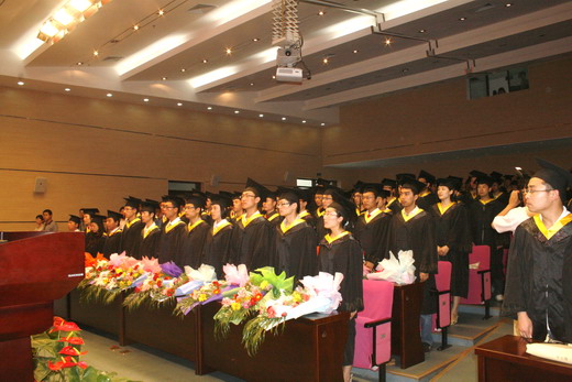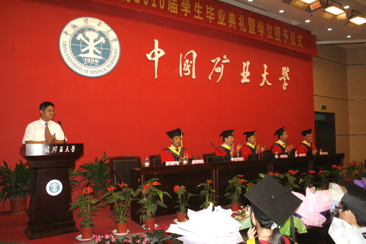 部分教师、07级学生和毕业生家长参加了本次典礼。典礼由钱雄副书记主持。 在雄壮的国歌声中,毕业典礼正式开始。在热烈的掌声中,章毛平书记宣布了“优秀毕业生”名单、“志在四方”先进个人名单、2010届研究生、本科生优秀毕业生论文名单。主席台各位老师分别为获奖学生颁奖。紧着着进行的是庄严的学位授予仪式,林柏泉副院长、李增华副院长分别宣布获得博士学位、硕士学位以及学士学位学生名单。主席台各位老师亲切地为获得学士学位的的学生拨穗,每位学生光荣领取学士学位证,并与王院长一一合影留念。接下来,毕业生代表江大鹏、在校学生代表袁文静分别做了发言,教师代表吴征艳也表达了教师对毕业生的殷切期望和美好祝福。激情、慎思、好学、力行是王德明院长对大家的热情期待,他希望每位毕业生都能严格要求自己,在今后学有所成,成为国家的栋梁之材。