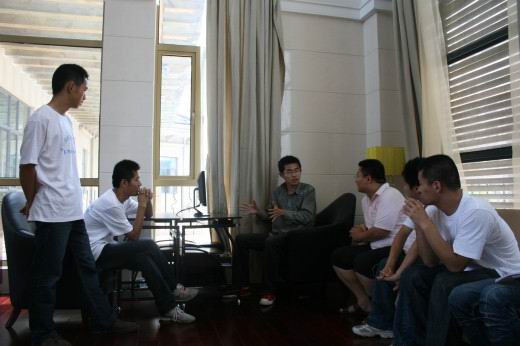 访谈中,吴幽同学想大家讲述了自己团队一年半来的创业经历,谈到作为没有经济实力的大学生在创业时应学会发现“蓝海”放弃“红海”,寻找他人涉足不多的潜在市场。在创业初期,并不单纯重视利益的最大化,而是打出自己品牌和信誉。当提及大学生创业的优势时,吴幽指出了当代大学生创业有计划性、战略性,素质较高,关注时事,思维较缜密,善于抓住机遇等优势。同时也存在着懒惰、高傲等劣势。在创业时,大学生不妨从小事做起,锻炼自己的压力承受能力,并注重人际交往,敢想敢拼。在智力支持方面,他着重谈到自己团队成员在科技创新的经历和成果,表示在科技创业上,有很多机会,当代大学生应学会发掘其中的商业价值,走适合自己的道路。最后,吴幽同学从学生的角度谈到创业与学习的关系,希望大学生创业者能正确权衡创业与学习的位置,力争取得双丰收。