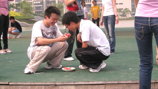 、管理学院、信电学院3个学院的团委学生会女生部联合举办的清凉一夏主题活动——“开心大胃王”比赛在镜湖畔举行。