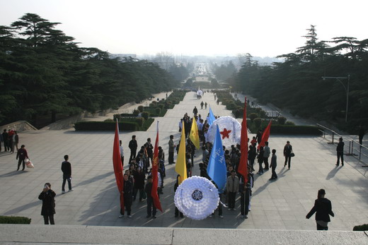 同学们在淮海战役纪念塔为革命烈士敬献花圈、致悼词。同学们回顾先烈们的英勇事迹,更是感到幸福生活的来之不易。扫墓活动结束后,同学们按照既定路线参观了淮海战役碑林、总前委群雕、粟裕将军骨灰撒放处等多出景点。
