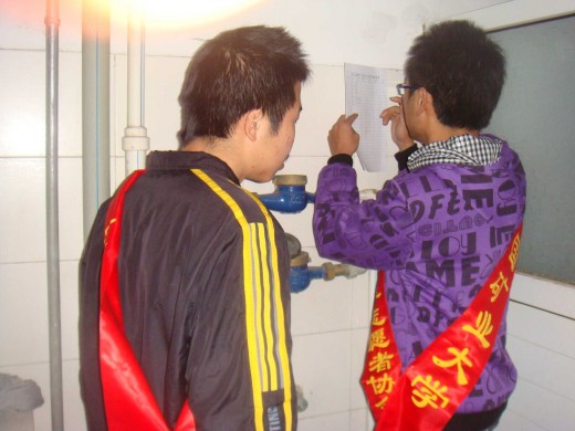 08、09、10级的宿舍的水表读数进行记录,并增强同学们“关注一滴水,节约一度电,争做节约大学生”的意识。